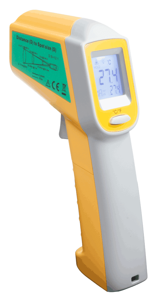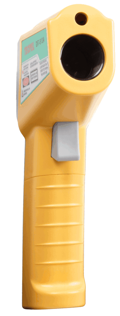 The DIT-513A Infrared Thermometer is a professional tool for industrial applications such as equipment hotspot checks and HVAC systems. It provides accurate measurements within -60~550°C and includes laser pointer and auto shut-off functionalities, suitable for diverse environments.
