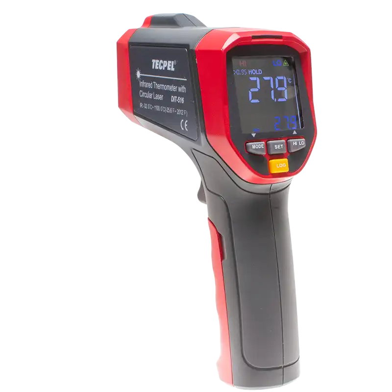 DIT-516 -32~1,100°C 使用環形雷射光圈設計紅外線溫度計功能齊全,具有量測警報及可調發射率功能,能用於多數溫度量測場合。 紅外線溫度計透過檢測物體發出的紅外線輻射來測量溫度。它是非接觸式的,速度快,非常適合在各種環境下測量表面溫度,包括工業、醫療和烹飪應用。紅外線溫度計方便使用,減少了污染風險,並確保安全和準確性。