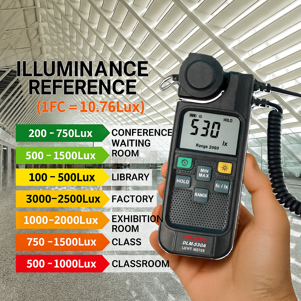 DLM-530A 是一款便攜式數位照度計,專為照明工程師、建築師及安全檢測人員設計。其精確度和便攜性使得它成為隨時隨地進行精準光度監測的可靠工具,無論在何種光線環境下皆可迅速獲得正確的讀數。