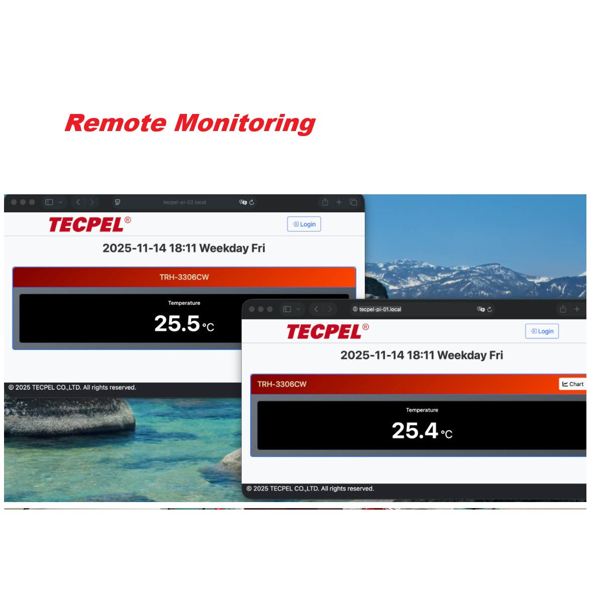 TRH-3310CWHL-PT 提供高亮度顯示和精確溫濕度測量,適合工廠、加工廠、鍋爐房等高濕度或多塵環境。具備遠端監控功能,能實時存取數據。
