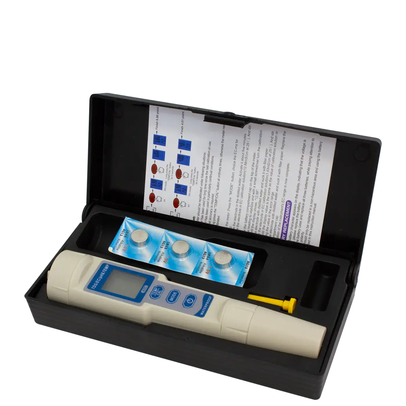 H-875是 TDS/PH/EC/溫度四合一測試儀,一台即可完成所有量測,不需額外更換電極,具有優良的防潑水性與方便攜帶的適用性,防水等級為 IP55,大螢幕同時顯示兩種數值。